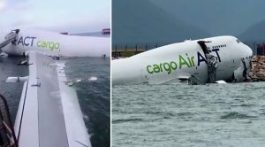 ദുബൈയിൽ നിന്ന് വന്ന ചരക്ക് വിമാനം ഹോങ്കോങ് അന്താരാഷ്ട്ര വിമാനത്താവളത്തിൽ ഇറങ്ങുന്നതിനിടെയാണ് റൺവേയിൽനിന്ന് തെന്നിമാറി കടലിൽ പതിച്ചത്. ബോയിങ് 747 ചരക്ക് വിമാനം വിമാനത്താവളത്തിന്റെ ഭിത്തിക്കരികെ കടലിൽ ഭാഗികമായി വെള്ളത്തിൽ മുങ്ങിക്കിടക്കുന്ന ചിത്രം പുറത്തുവന്നു. വിമാനത്തിന്റെ നോസ്, ടെയിൽ എന്നിവ വേർപെട്ട നിലയിലാണ്.