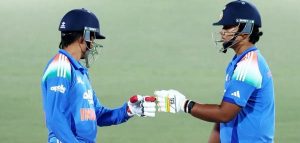 മറുപടി ബാറ്റിങ്ങില് ഇന്ത്യയ്ക്ക് ഓപണർമാരായ പ്രിയാൻഷ് ആര്യ (10 റണ്സ്), വൈഭവ് സൂര്യവംശി (12 റണ്സ്) എന്നിവരെ വേഗത്തില് നഷ്ടമായി. പിന്നാലെ നമൻ ധിറിനൊപ്പം ക്രീസിലൊന്നിച്ച ഹർഷ് ദുബെ ഇന്ത്യയെ അനായാസ വിജയത്തിലേക്ക് നയിച്ചു. നമൻ ധിർ 19 പന്തില് 30 റണ്സെടുത്തും പിന്നാലെ നേഹല് വധേര 24 പന്തില് 23 റണ്സെടുത്തും പുറത്തായി.