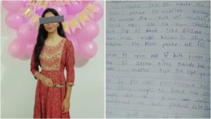 അധ്യാപകന് അടിക്കുന്നതിനിടെ തന്റെ കൈ പിടിച്ചുവെന്നും അയാളുടെ അടച്ച മുഷ്ടി തുറക്കാന് വെല്ലുവിളിച്ചുവെന്നും കുറിപ്പില് പറയുന്നു. ശിക്ഷയുടെ മറവില് അധ്യാപകന് തന്റെ വിരലുകള്ക്കിടയില് ഒരു പേനവെച്ച് അമര്ത്തിയെന്നും കുട്ടി പറയുന്നു. ബെഞ്ചില് ഇരിക്കുമ്പോള് അധ്യാപകന് അശ്രദ്ധമായി തന്റെ കൈ പിടിച്ചുവെന്നും കൈ എത്ര തണുത്തതാണെന്ന് തന്നോട് പറയാറുണ്ടെന്നും വിദ്യാര്ത്ഥിനി ആരോപിച്ചു. സംഭവത്തില് സമ?ഗ്രമായ അന്വേഷണം വേണമെന്ന് കുടുംബം ആവശ്യപ്പെട്ടു. ആത്മഹത്യയ്ക്ക് പിന്നിലെ കാരണം കണ്ടെത്താന് പോലീസ് എല്ലാ വശങ്ങളും പരിശോധിച്ചുവരികയാണെന്ന് എഎസ്പി സിംഗ് പറഞ്ഞു.