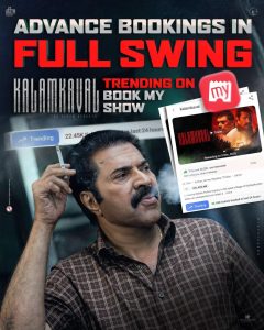 മമ്മൂട്ടി, വിനായകൻ എന്നിവരെ കേന്ദ്ര കഥാപാത്രങ്ങളാക്കി ജിതിൻ കെ ജോസ് സംവിധാനം നിർവഹിച്ച കളങ്കാവലിൻ്റെ ഓണ്‍ലൈൻ ടിക്കറ്റ് ബുക്കിങ്ങിന് ഗംഭീര പ്രതികരണം.തിങ്കളാഴ്ച രാവിലെ 11.11 നാണ് ചിത്രത്തിന്റെ കേരളത്തിലെ ഓണ്‍ലൈൻ ബുക്കിംഗ് ഓപ്പണ്‍ ആയത്. അഡ്വാൻസ് ടിക്കറ്റ് ബുക്കിംഗ് ഓപ്പണ്‍ ആയി മിനിട്ടുകള്‍ക്കകം ചിത്രം ബുക്ക് മൈ ഷോ ആപ്പില്‍ ട്രെൻഡ് ചെയ്യാൻ ആരംഭിച്ചിരുന്നു.