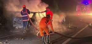 ശബരിമല തീര്ത്ഥാടകരുടെ കാറിന് തീപിടിച്ചു