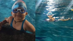 പ്രായം 1 വയസും 9 മാസവും, നീന്തിക്കടന്നത് 100 മീറ്റർ, ഏറ്റവും പ്രായം കുറഞ്ഞ നീന്തൽ താരമായി വേദ