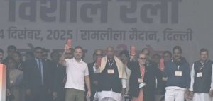 ന്യൂഡല്‍ഹി: വോട്ട് കൊള്ളയ്‌ക്കെതിരെ പ്രതിഷേധവുമായി കോണ്‍ഗ്രസ്. ന്യൂഡല്‍ഹിയിലെ രാം ലീല മൈതാനത്ത് നടന്ന പ്രതിഷേധ പരിപാടിയില്‍ ലോക്‌സഭാ പ്രതിപക്ഷ നേതാവ് രാഹുല്‍ ഗാന്ധി, കോണ്‍ഗ്രസ് അധ്യക്ഷൻ മല്ലികാർജുൻ ഖർഗെ, സോണിയ ഗാന്ധി, പ്രിയങ്ക ഗാന്ധി, കെ സി വേണുഗോപാല്‍ തുടങ്ങിയ മുതിർന്ന നേതാക്കള്‍ പങ്കെടുത്തു.