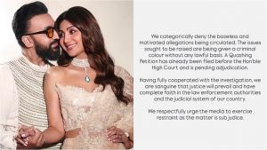 സാമ്പത്തിക തട്ടിപ്പ് കേസ്: `താനും ഭർത്താവും ഒരു കുറ്റവും ചെയ്തിട്ടില്ല’, എഫ്ഐആറിൽ പറയുന്ന ആരോപണങ്ങൾ അടിസ്ഥാന രഹിതമെന്ന് നടി ശിൽപ ഷെട്ടി