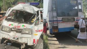 കെഎസ്ആര്ടിസി ബസ്സിലേക്ക് ആംബുലൻസ് ഇടിച്ചുകയറി അപകടം; രോഗിയുള്പ്പെടെ നാലുപേര്ക്ക് പരുക്ക്