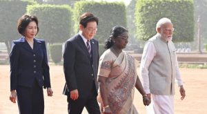 ഇന്ത്യയും ദക്ഷിണകൊറിയയും തമ്മിലുള്ള വ്യാപാരബന്ധം 27 ബില്യണ്‍ ഡോളറില്‍ എത്തിയെന്ന് നരേന്ദ്രമോദി കൂട്ടിച്ചേര്‍ത്തു. ഇന്ന് രാവിലെ ദക്ഷിണ കൊറിയന്‍ പ്രസിഡന്റിന് രാഷ്ട്രപതി ദ്രൗപതി മുര്‍മുവും പ്രധാനമന്ത്രി നരേന്ദ്രമോദിയും ചേര്‍ന്ന് ഔദ്യോഗിക സ്വീകരണം നല്‍കിയിരുന്നു. ഔദ്യോഗിക സ്വീകരണത്തിനു ശേഷം രാജ്ഘട്ടില്‍ എത്തി മഹാത്മാഗാന്ധിക്ക് ആദരം അര്‍പ്പിച്ചു. മൂന്ന് ദിവസത്തെ സന്ദര്‍ശനത്തിനായി ആണ് ദക്ഷിണ കൊറിയന്‍ പ്രസിഡന്റ് ലീ ജെ മ്യുങ് ഇന്ത്യയില്‍ എത്തിയത്.